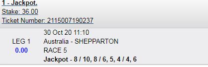 Melton Jackpot pool over ZAR 1,2 BAR. Will be paying massive today with the bombs in the 3 legs so far.
