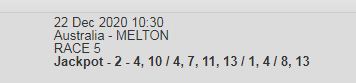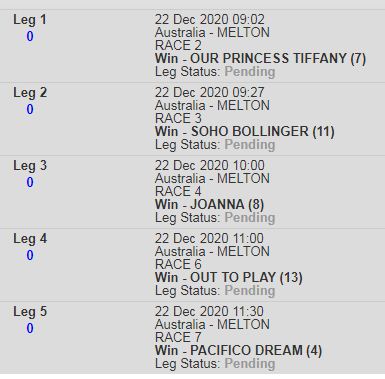 Nice card on Vicbred Semis at Melton. Finals on 31 Dec. Not sure why HW didnt load betting for all races. This sucks, had to take my Canadian on SPs
