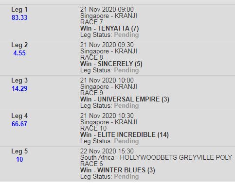 I failed to find my 5th selection for my canadian hence i added Winter Blues carded at Greyville tomorrow, seemingly its a penalty kick and worth the wait.