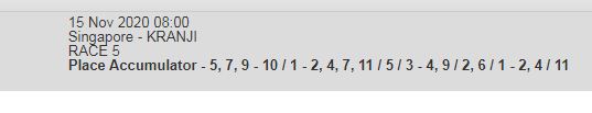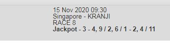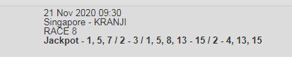 I don't know what it is, but Singapore racing post the lockdown has lost its lustre to me, the results have been horrible for the majority of the time, not like it was prior. Prefer Hong Kong and Champ de Mars to this.