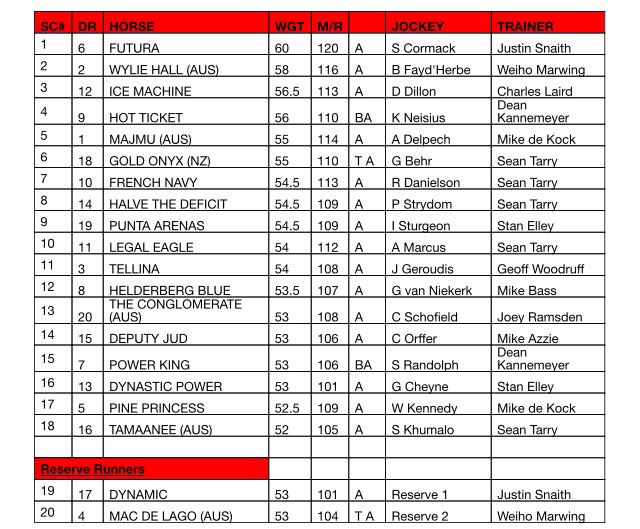 Re: Durban July Final Field announcement