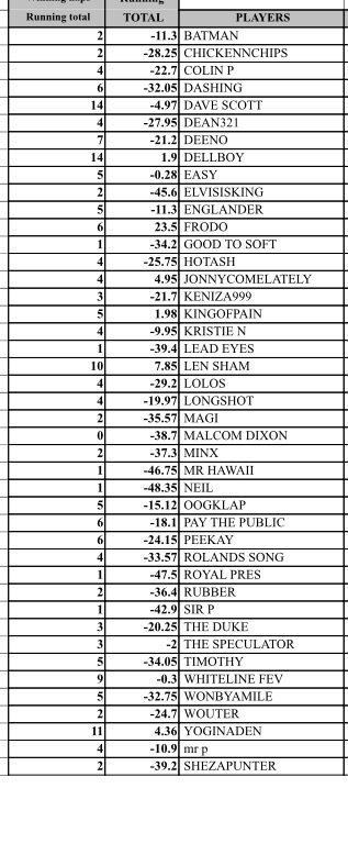 Thanks Bob for all your efforts, my first real attempt @ horse racing - so results not too good but had fun, & that what really matters.
