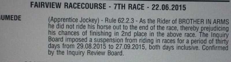 10 years 7 months ago - 10 years 7 months agoThe horse that you are referring to , Oriental Tiger was earmarked for a Grade 2 @ Greyville in July long before he made his debut so the stable was clearly aware of his ability to win a maiden in PE and he would have won with or without Gavin in the saddle, the jockey change was made purely to assist Gav in the title chase after the horse we were meant to ride in that race was withdrawn at the acceptance stage,Yvette was in Jhb with Copper Parade who ran at Turffontein the day after Oriental Tiger won in PE so was unaware of the fact that Gav was available, after conferring with Gav I called Yvette and asked if he could ride OT, Yvette in turn discussed this with the owners who agreed to the Jockey change and this was done on the morning of the race meeting at 8am, worth noting that not a word was said about the change until the horse won and only then did all hell broke loose..the fact that the horse then went on to run 2nd in the Umkhomazi Stakes in his next start is proof enough that he would have won the maiden with or without Gav,I apologize if the truth does not fit in with your conspiracy theory train of thought but it is what it is,however seeing as this incident took place in April and 5 months on you remain an active player it would appear that the multitude of rotten and crooked goings on within the industry have not deterred you...Shield wrote: titch don't be a hypocrite