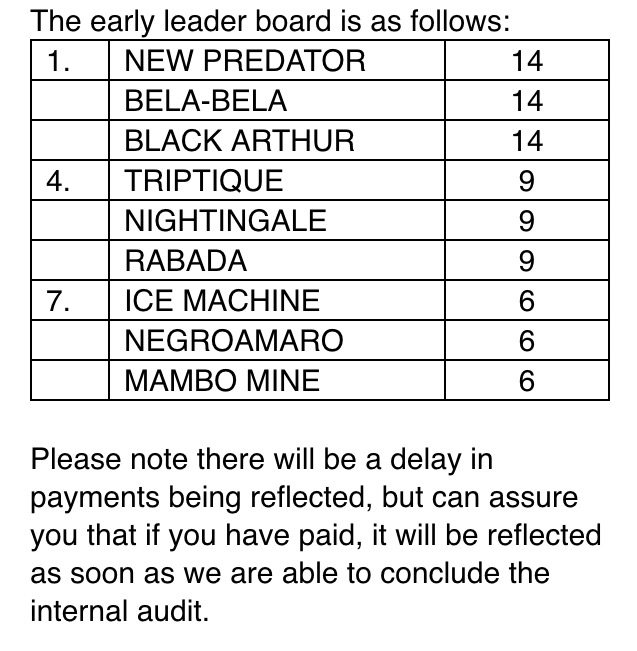 9 years 11 months agoMagi wrote:Chris van Buuren wrote: My entries are in.....what happens if I only pay tomorrow or Monday?