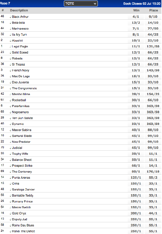 Marinaresco 18th on the log. Touch and go there as the winner of the Cup Trail is sure to get in.
