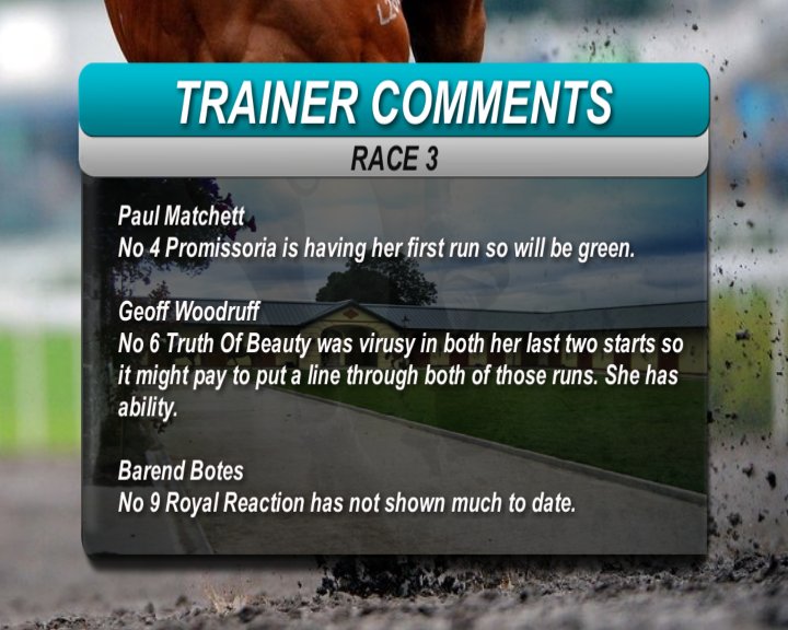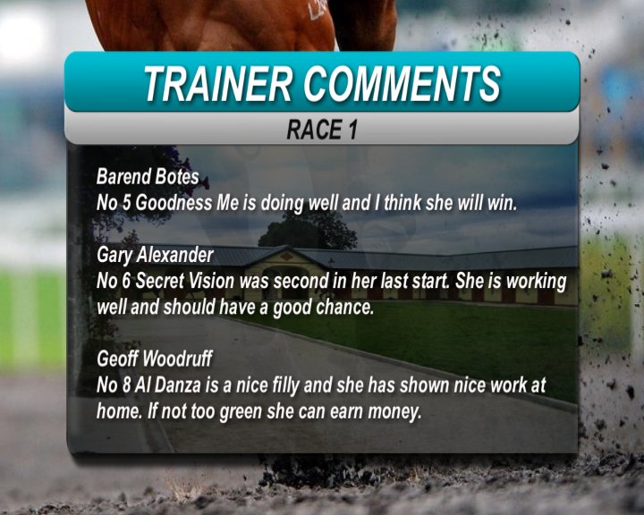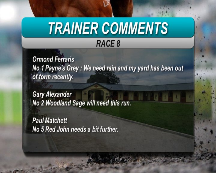 COLLABRO - I thought that he would prefer a 1400m after his debut when green and having to come over from a bad draw. The first two in that race are future GR1 horses, imho. Today we again have the draw bias coupled with the rain which will make the draw bias even worse. The reason that I put him in this race was because he showed a big improvement at home in terms of speed and because this is a weak field. On his work and all things being equal, I make him a big runner, if we can get over towards the middle/ outside of middle.