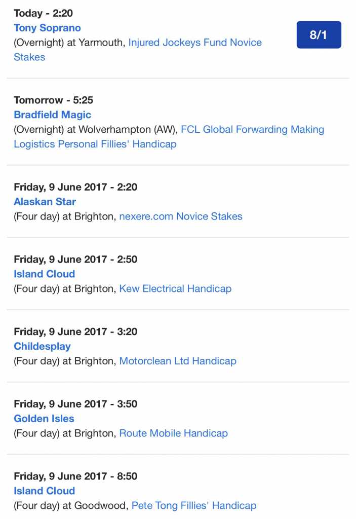 Gavin has full book of rides at Turffies on Sunday. I thought you were in the know Bob?