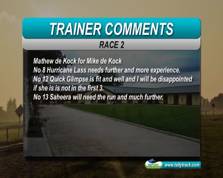 8 years 7 months ago.....owner flew up from KZN..... :huh:durbs wrote: Honestly some of these trainers with their first timer comments are taking the piss or they just don't know anything about the horses they are training.Look how that horse won and the trainer doesn't know how good it is?Money came for it from 20-1 out to 44-1(probably after the comment)and then into 30-1.