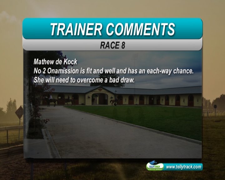 R8: Both form runners, Lebanese Tractor and Onamission come off breaks, so both vulnerable imo; one roughie to seriously consider imo is Three Kingdoms - like Cascepedia, she beat Knysna Rose in the maidens, but runs of a 55 :ohmy: also ran a fair race behind Guns and Roses and her last start after a break was encouraging