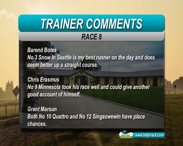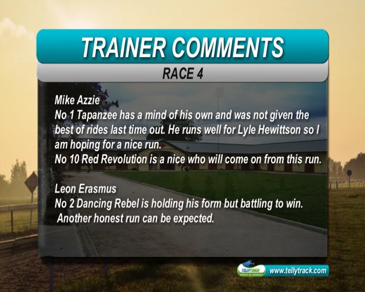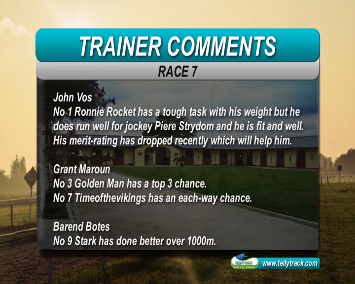 8 years 7 months agoPETERPAN wrote: Adams im trying to figure out some of your selections,u say u don't get involved but u do,Orapa,on gallops he dont have sprint form(mostly1400,1600) its a PP race so he dropped in rating from 89-74 against Africa Rising 98 in a grad plate race which i think was way stronger but the younger play the night & and snowboarding has higher ratings with low weights and more scope for improvement in my books. so i make them the 2 to beat but wont be surprise if Orapa upsets, yet u give joey piper?