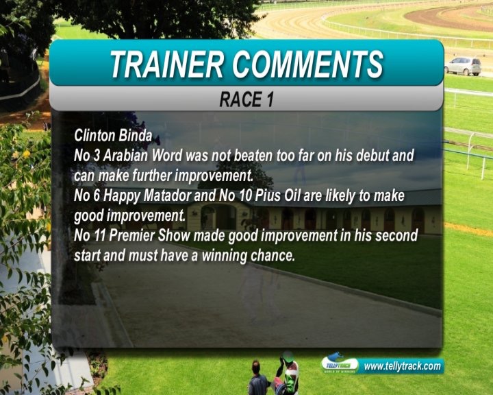 Back to the Vaal inside - draw factor (4 races down the straight) unknown especially after the rains .... thoughts :