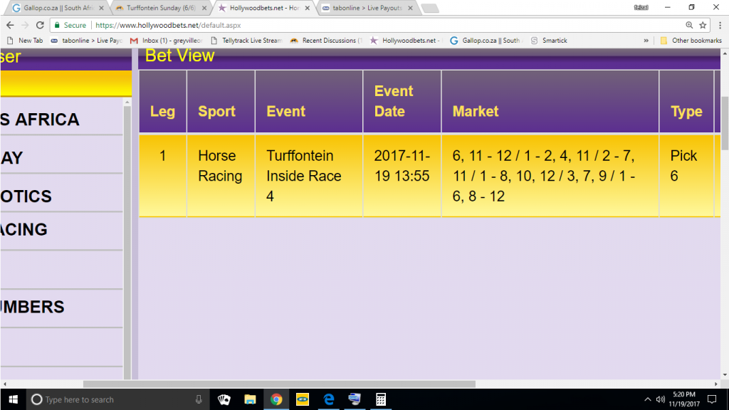 However before all this technology , when growing up , one would never show his ticket in a tote or show emotions , there were to many people standing waiting to "Touch You " so you would either cash the ticket on the quiete or come banck the next day and collect.