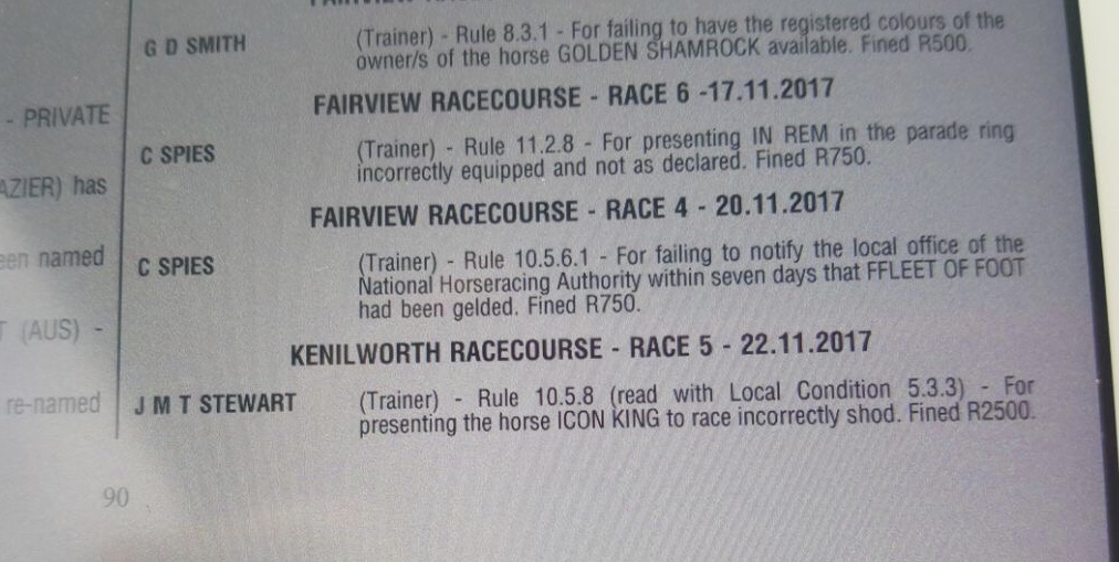 On Thursday, the best bet on the Kenilworth card, Afdeek, blew in the betting, cast his left fore shoe on the way to the start and ran unshod in front – running a dirty second, to a horse whose Equine Influenza injection was out of date.