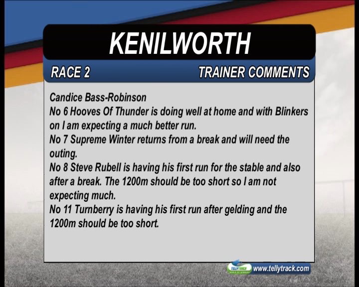 8 years 4 months agoPilot officer wrote: I have pilot officer tomorrow race 2 will be the best looking horse on the day.Magificent looking royal airforce.Was meant to go for the Durban season but it was put on hold due to a wind operation which i believe was a success. The work rider says no race however my trainer and jock says the experience will do him the world of good.I am looking forward to his run.