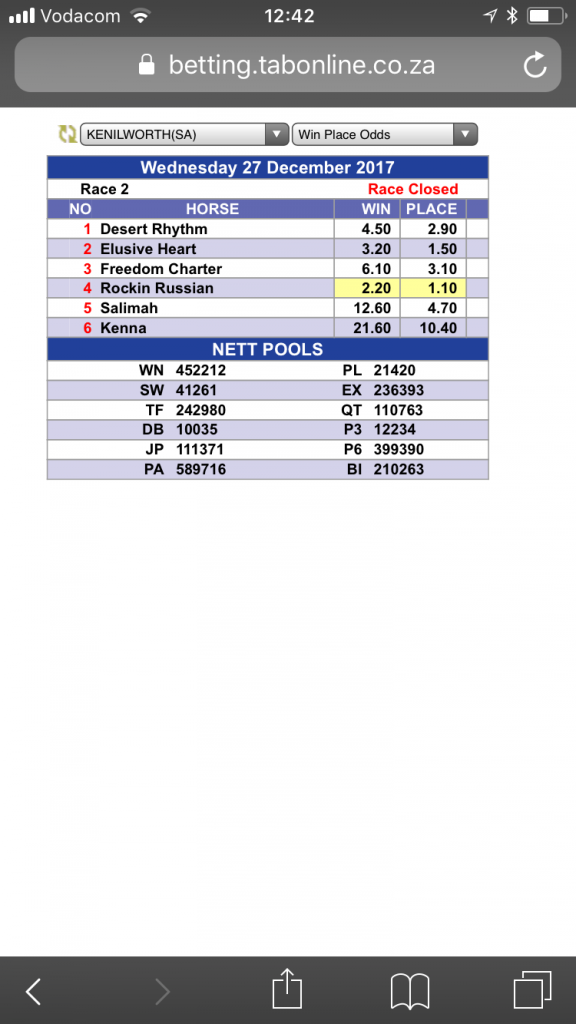 Have warned you guys several times the kzn 2yo feature form is muck 90 percent of the time and it simply doesnot stand up ..its been this case for a couple of years due to a number of issues which i will not go into as it called champion seasons :lol: :lol: