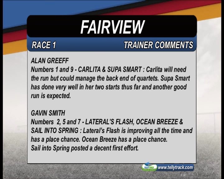 what a comment by Greeff - Carlita will need the run - back end of quartets - the whole world knew the result yesterday