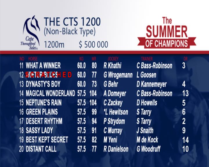 Winter Triple Crown hero African Night Sky did not have much luck in the L’Ormarin’s Queen’s Plate, as he was caught one wide without cover the whole way. Snaith was upbeat about the four-year-old Dynasty gelding’s chances in the Met and said, “That was his second run after a rest in a fast run race and he finished only 2,9 lengths back. Over 2000m, in his third run after a rest, he will finish closer.”