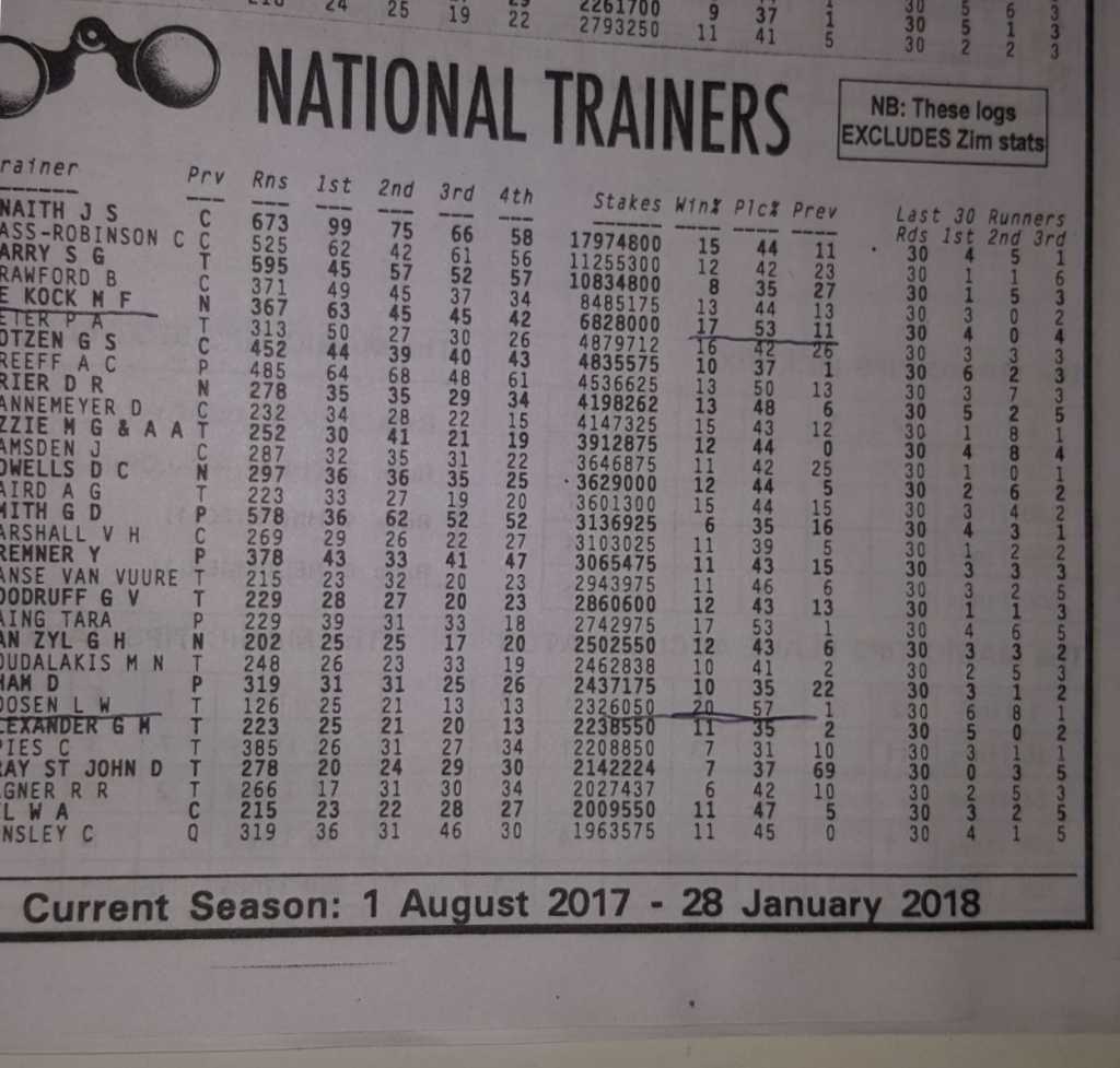 Today all the successful stables have numbers 120 plus horses and get 50 to 60