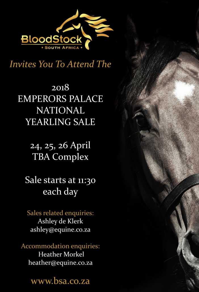John and Liz Slade will be offering three yearlings at the2018 Emperors Palace National Yearling Sale, which is set to take place at the TBA Complex in Germiston from April 24th to April 26th.