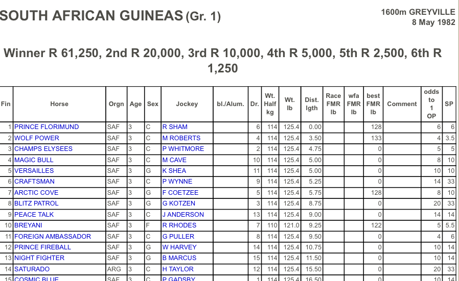 I agree that Prince Florimund had Wolf Power’s measure in general, but many of those races were over 1800+. I think that at 1600 only, Wolf Power had his measure (as much as I loved Prince Florimund)