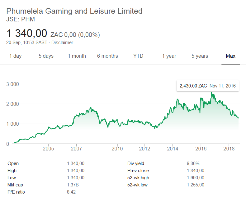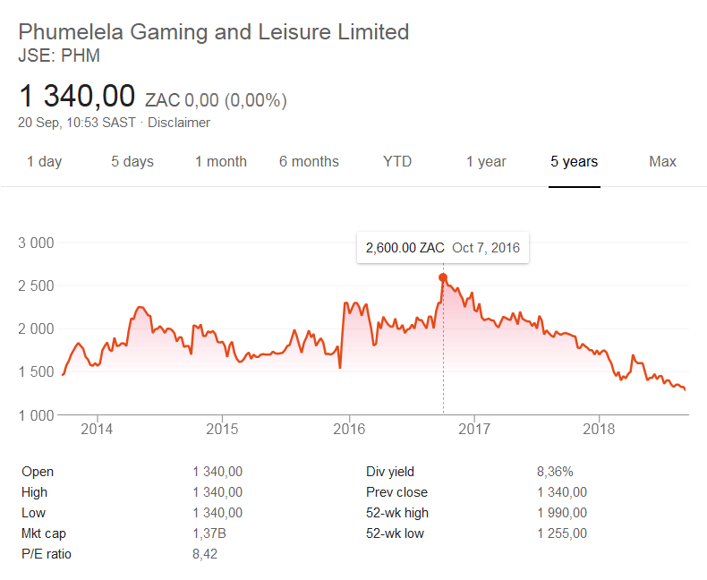 “The Company’s financial results announcement scheduled for 5 October 2018 will be delivered by the new CEO.” – Phumelela Gaming and Leisure