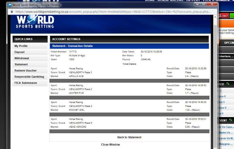 7 years 5 months agoJacques-Michael wrote: Guys played this accumulator this morning. Al 4 these horses won. Imagine if we had them for the win!