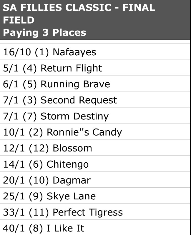WILGERBOSDRIFT S A FILLIES CLASSIC (Grade 1)