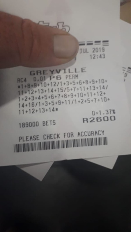 Guys , perm at this stage works out 1,8 mil.... i making a call to play 2 perms for us all , one where i will put the 5 most tipped horses in every 2nd leg and visa versa.