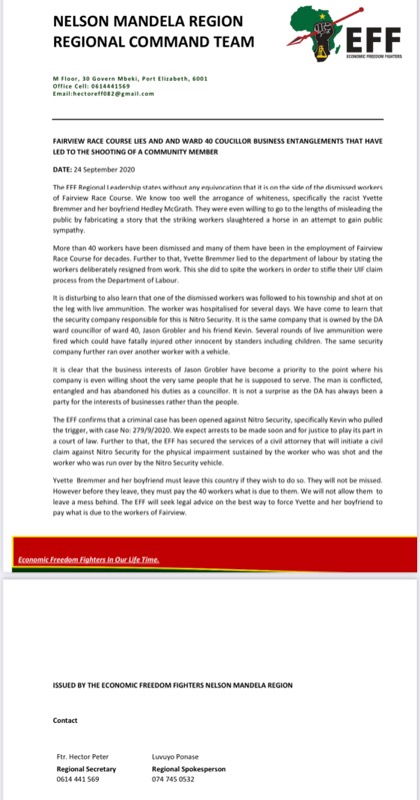 Looking on the Eastern cape EFF twitter account, this appears to be an official email address, but there is no sign of this statement