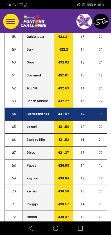 Re: Re:Re:Hollywoodbets Punters Challenge - Reloaded