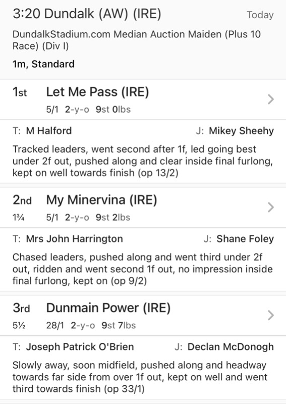 ....and now they post an incorrect horse in 3rd place in Dundalk....which is supposed to be no 2 ......