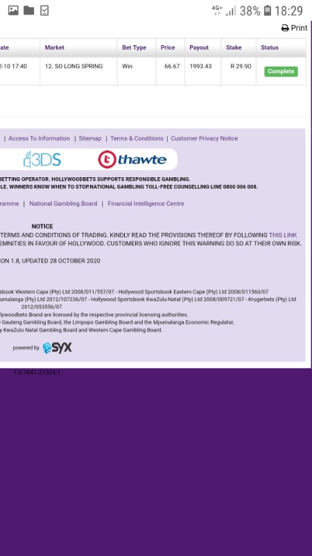 r Horse Racing South Africa VAAL RACE 5 2020-12-10 16:25 1 / 1 - 12 / 1 - 12 Pick 3
