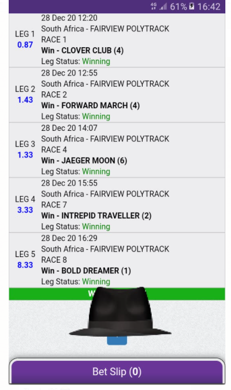 Sorry Bob but you another one that had their hopes on Greg Cheyne and he failed yet again with another unplaced run.A few on here been done by him today except Craig Pienaar who must be over the moon that Cheyne was on the second horse when his first leg of his winning double won.