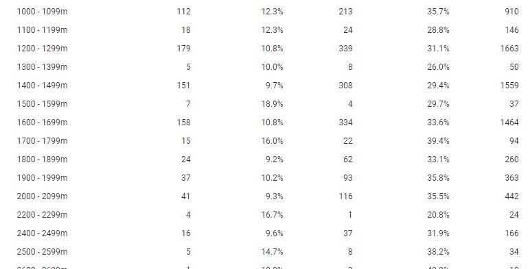 So I did the correct maths ... he has had 4373 rides under <1600m's for 472 wins 11.3%