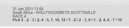 Agreed. I was fortunate I put 10 on the nose only because Robertsons only runner, and I decided to follow young Strydom on all his rides today. Formwise was a no hoper but won like a 3/10 shot :side: :S