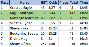 2 winners, 1st & 4th races. No places. no 22 out of 11 398 in the HW Punters challenge. So far so good.