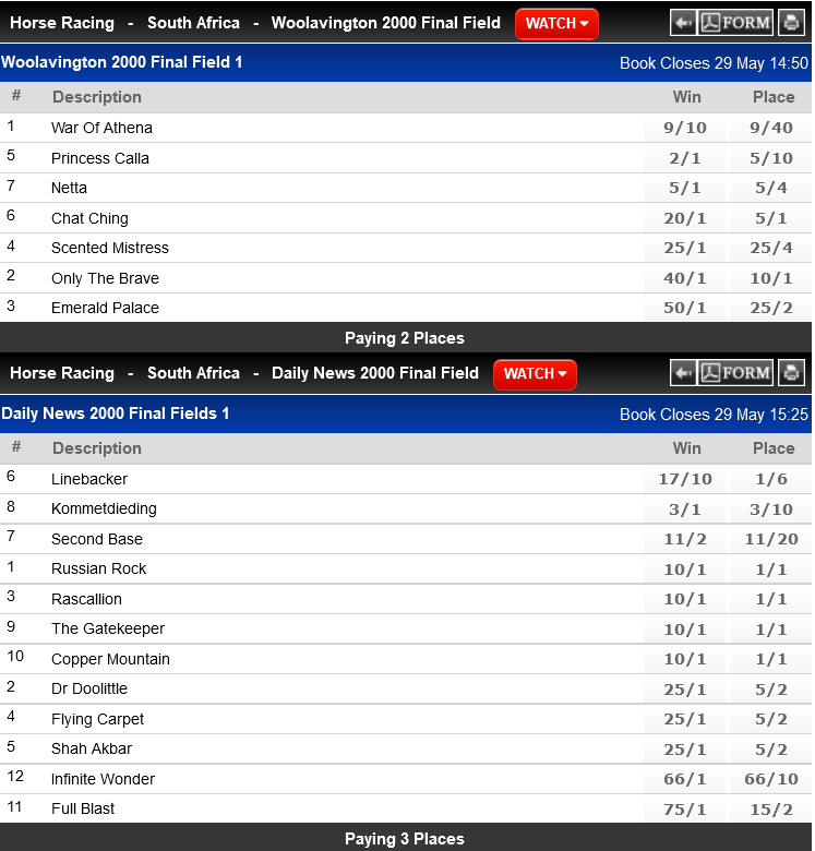 Or maybe Linebacker will be scratched, last time something like this happened, Captain's Ransom was scratched which explained the wicked drift in the market, not that Linebacker has drifted, not yet anyway.