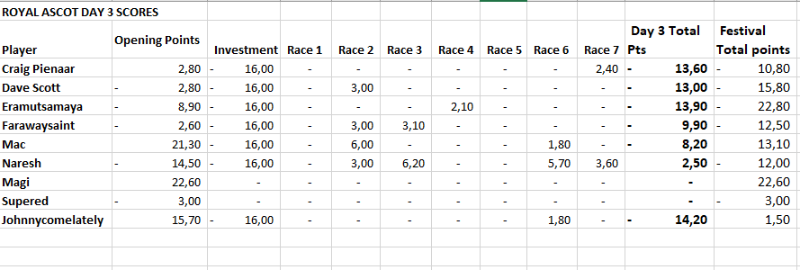 Re: Re:ROYAL ASCOT TIPPING COMPETITION DAY 4 - FREE ENTRY