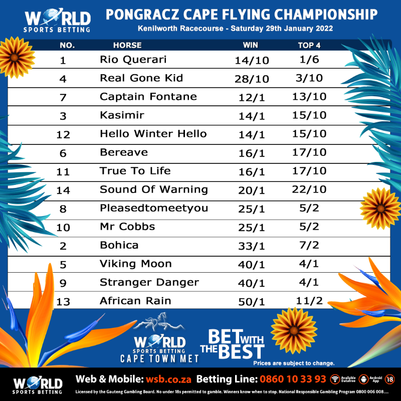 Re: World Sports Betting Met - Kenilworth Saturday 29 Jan