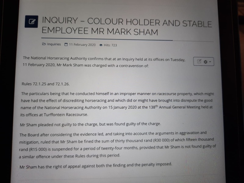 Re: Group 1-winning trainer banned for six months for falsifying ownership details
