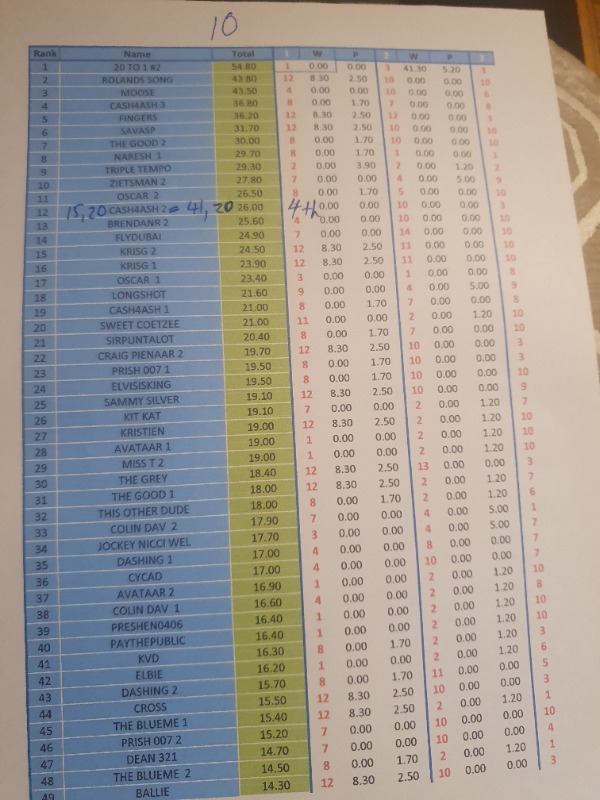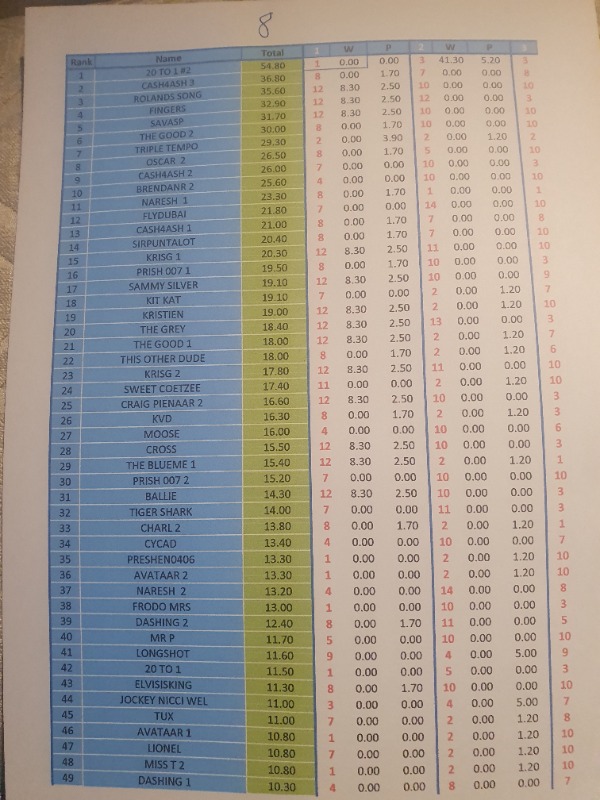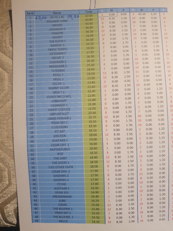 Many thanks. This is a very rare occasion (apart from this Compo) for me - never seen such a huge profit from a July meeting EVER!