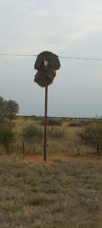 3 years 7 months agoSociable weavers those nests. They accommodate 100+ pairs of birds. It is forecast that this summer, with global warming temps going skywards m, many of those birds will be decimated as those nests will catch fire. Heaven help us.