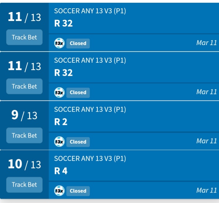There was 1 lucky winner collecting almost R1.2 million for the Soccer Any 13 last weekend.