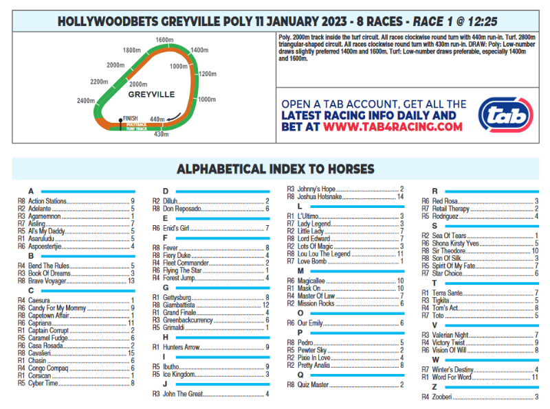 Re: HOLLYWOODBETS GREYVILLE 11 JANUARY 2023
