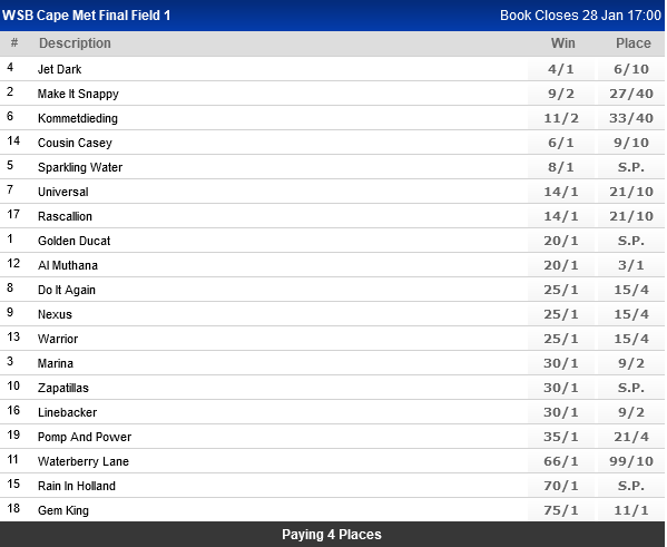 Re: World Sports Beting Cape Town Met Final Field