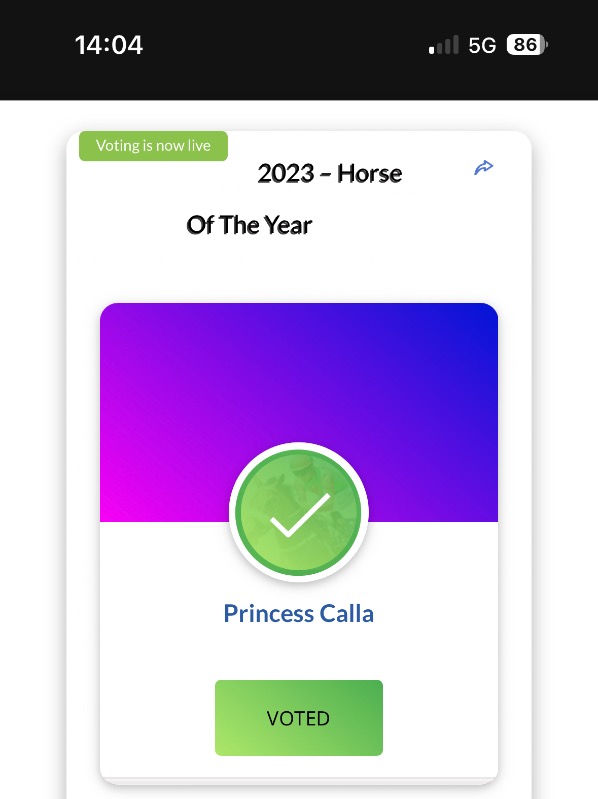 Remember your votes guys and I have no doubt PRINCESS CALLA should win horse of the year