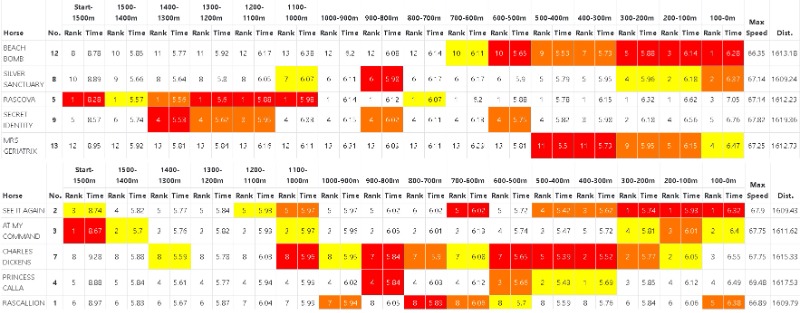 WELL....it was simply ridiculous!!! The jockey of RASCOVA simply got it all so wrong. Having backed Rascova I swore an appy was riding him (or maybe the jock thought he was in a sprint?!)He simply went far far too fast as is evident when comparing it to The SEE IT AGAIN RACE aswell as the Sprints on the day.