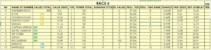 R6: Probably a match race between Isivunguvungu and Thunderstruck, while Dyce has won impressively in Gauteng, so could challenge; the rest seem held, especially over 1000
