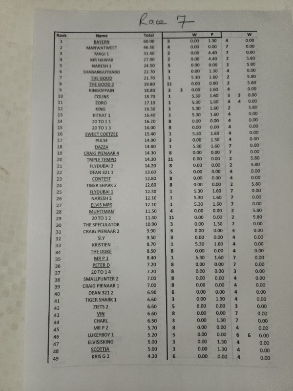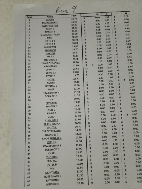 SPARE A THOUGHT FOR ZIETSMAN...................... R 12 HE FINDS A 50 / 1 WINNER ON THE BOOKS.