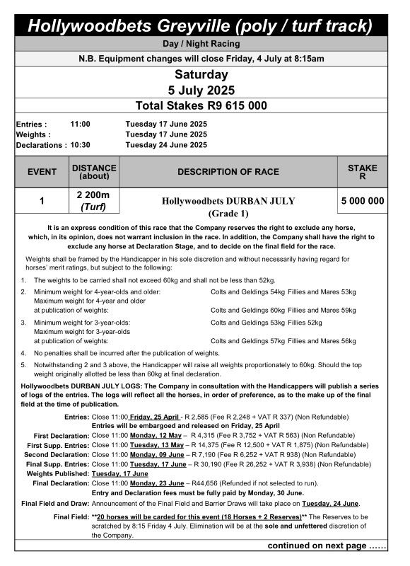 Just my opinion, maybe Sail The Seas is not being aimed at the July. Maybe he is being aimed at the Hollywoodbets Gold Challenge Gr. 1 over 1600m (7 May). Could be wrong, Sail The Seas has not won beyond 1600m, if that is correct, the rating is achieved over 1600m. Qualification here, a few have gone into the July and won, not winning beyond 1600m. Assuming he does run in the HWB Gold Challenge, at wfa conditions he would come into the race well weighted.